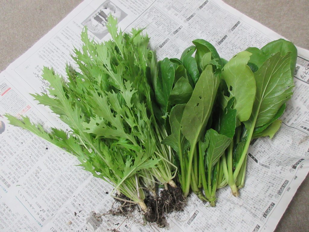残念ながら、ほうれん草は芽が出てこなくて失敗に終わってしまいましたが、水菜と小松菜は無事に収穫することができました。